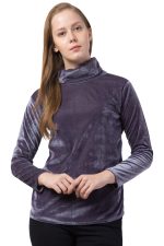 This stylish greyish-purple velvet turtleneck top combines elegance and comfort. Crafted from soft velvet fabric, it offers a luxurious feel while keeping you warm. The high turtleneck design adds sophistication, making it perfect for cooler weather. The long sleeves and slightly fitted silhouette provide a flattering and cozy fit. Ideal for casual outings, parties, or evening wear, this top pairs beautifully with black or white pants, skirts, or formal trousers for a polished and trendy look.