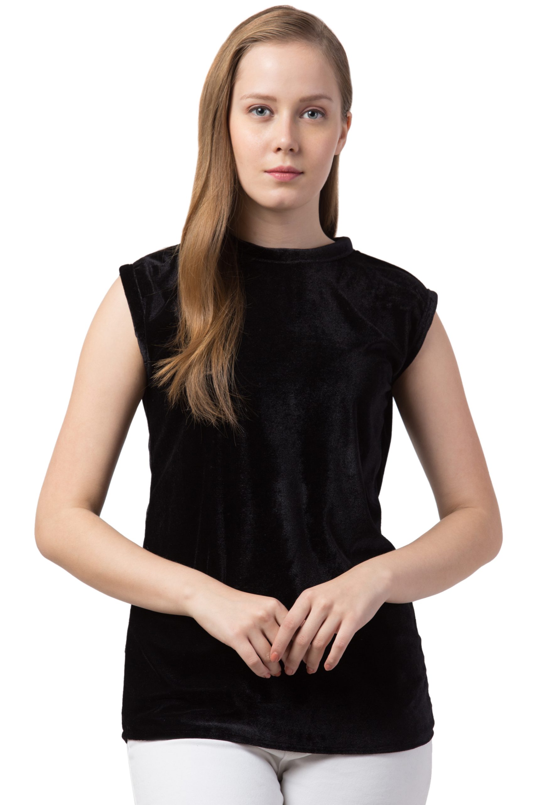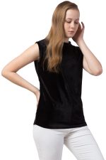 The Bosha Women’s Casual Velvet BLACK MANDARIN Neck Top for Office College Casual Wear Party Occasion for Women Girls