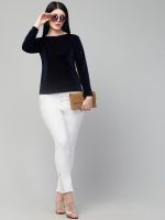 These black full-length women’s leggings are designed for comfort and versatility. Made from a soft, stretchable fabric, they offer a snug yet breathable fit. The elastic waistband ensures a secure hold, while the slightly ruched ankle design adds a stylish touch. Ideal for pairing with tunics, kurtis, or long tops, these leggings are perfect for casual, ethnic, or everyday wear. Whether for lounging, office wear, or outings, they provide a blend of style and functionality.